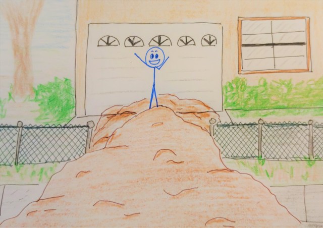 Suddenly the light broke through the clouds and beamed down on Kayla. She looked up with delight as most of the clouds scattered and disappeared, leaving just a few behind. She took a deep breath, face upturned, and let the warmth of the sun fill her. This was more like it. She wouldn’t have any trouble getting home now that she was strengthened. Not even that pile of dirt was going to stop her.